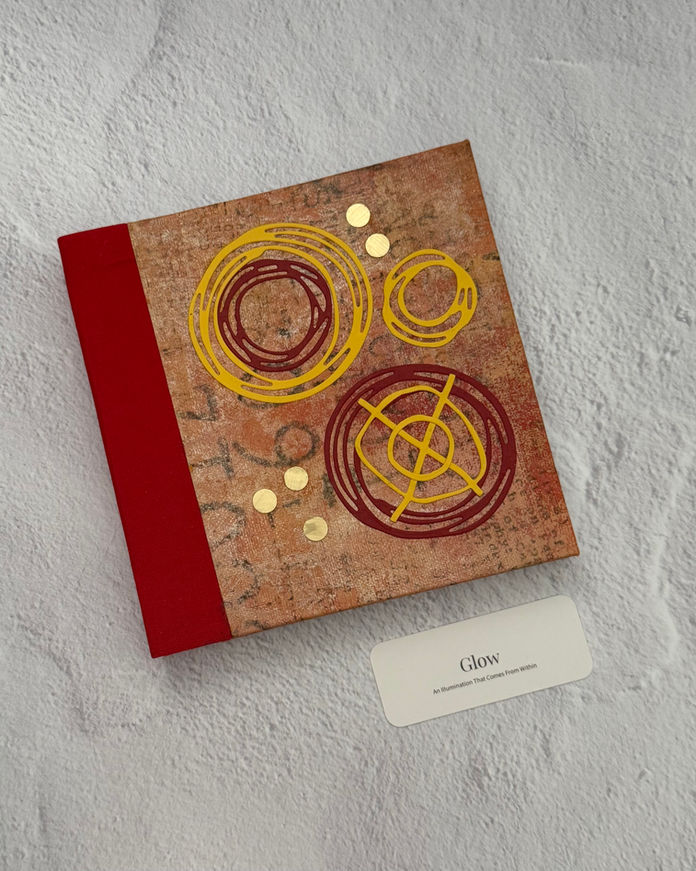 Each handmade book features 72 single (or 144 double-sided) pages of smooth 80lb white text paper, bound between hand-painted and collaged Khadi paper covers. Every cover embodies one of the twelve winter words and includes coordinating book cloth on the spine, hand-selected endpapers, and an embossed artist’s mark within.