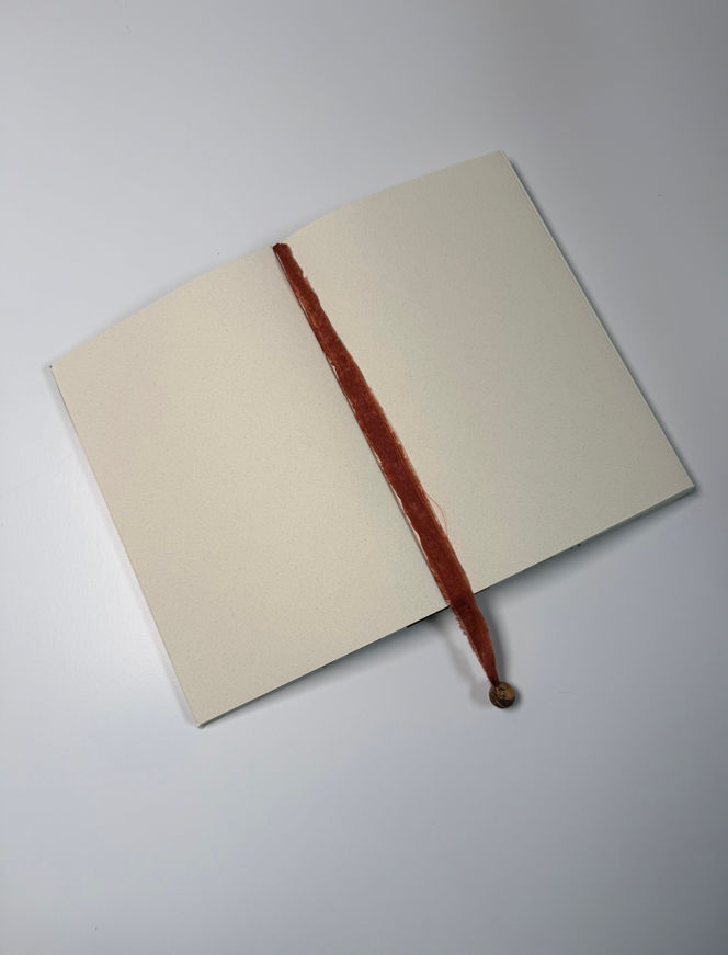 One-of-a-kind handcrafted book featuring original digital collage, natural textures, and hand-stitched pages.